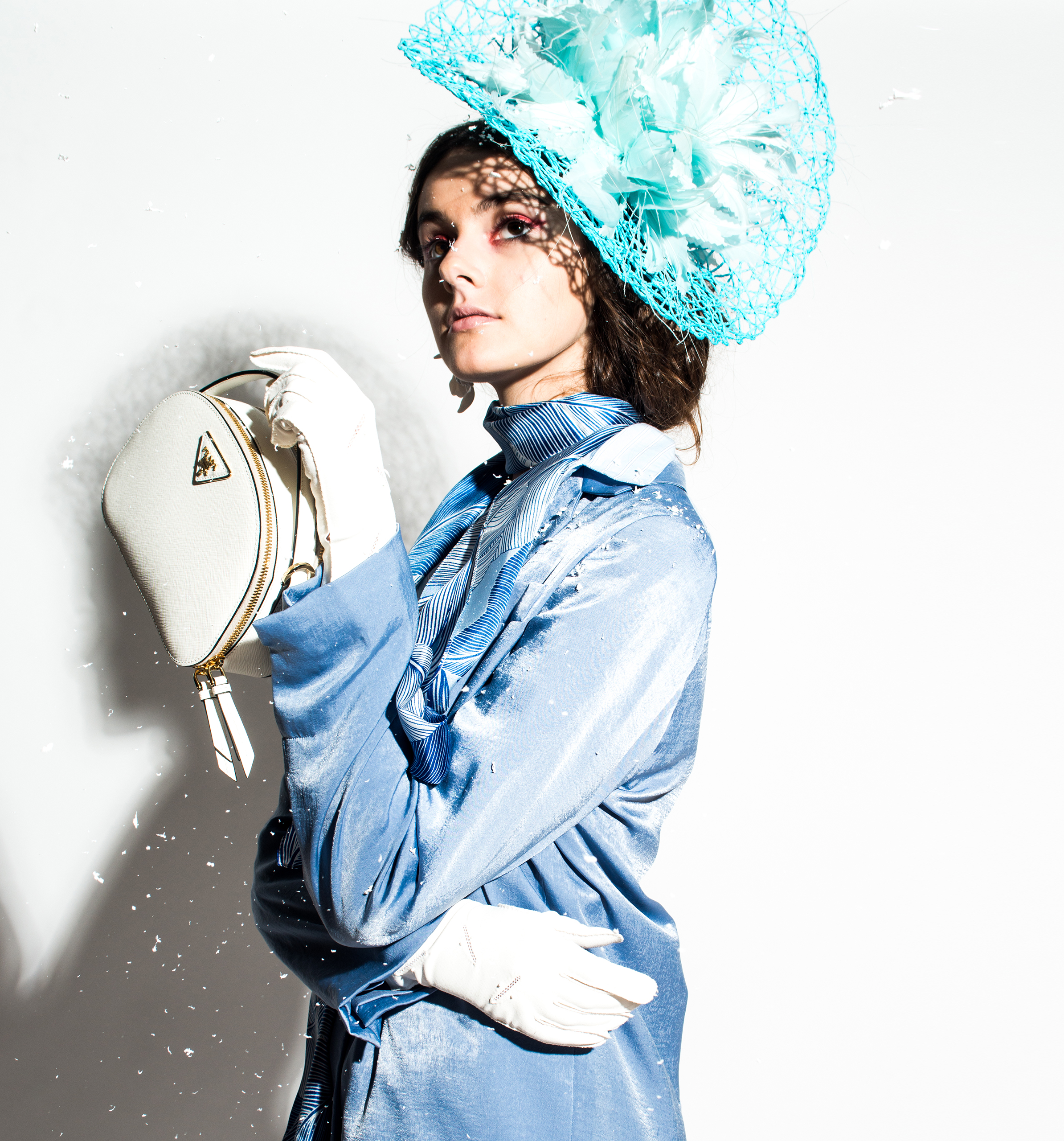 On Cheyenne: The Hat Girls graffiti custom hatinator ($1,200) at the Hat Girls in St. Matthews. Bitte Kai Rand dress ($308) at Tunies. Yves Saint Laurent bag ($1,990) at Rodes for Her. Vintage gloves ($35) at Formé Millinery.