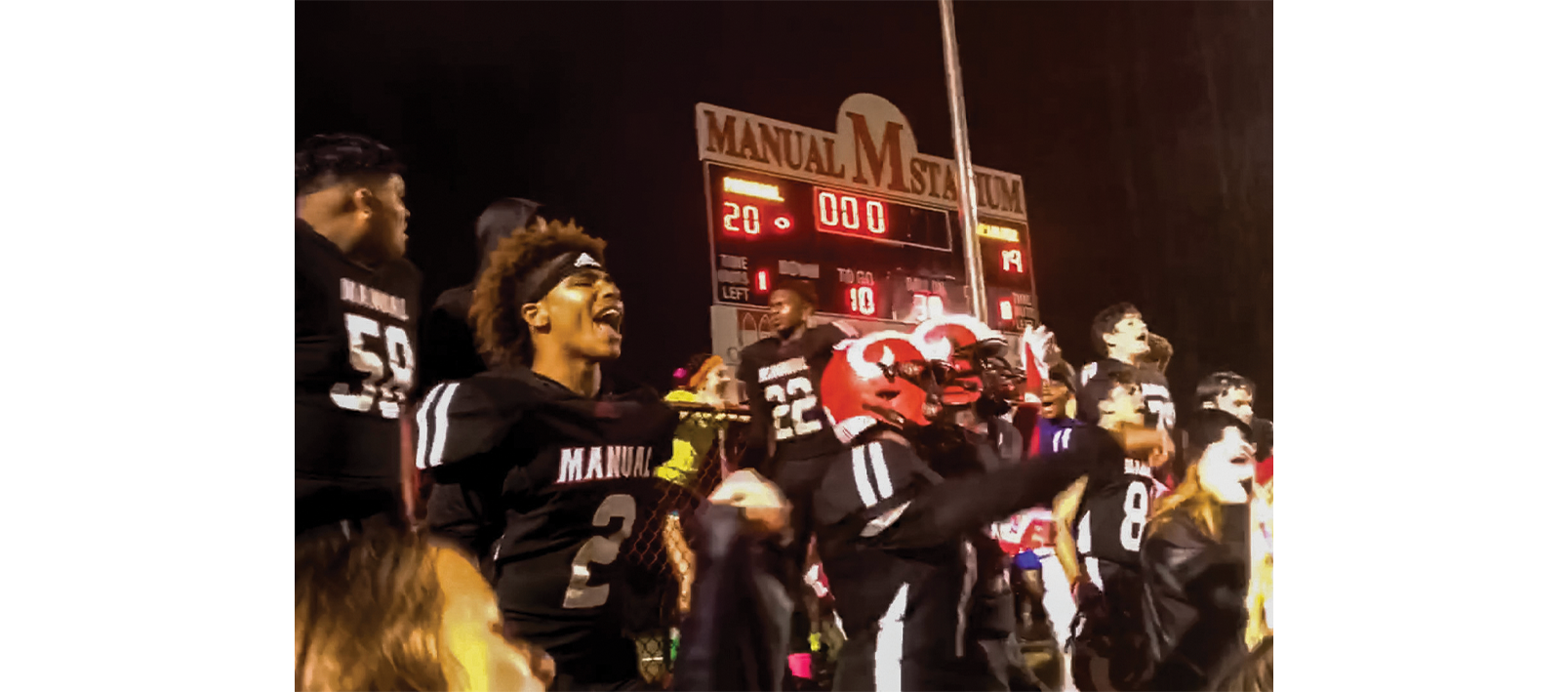 “Manual beat St. X for the first time in 23 years. The game was in the rain, and it was so cold, but it was so fun cheering on the team and was so exciting when we won.” — Annie Michael, Manual