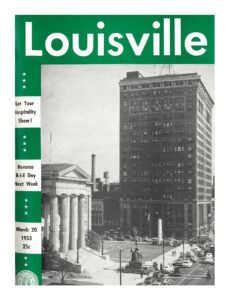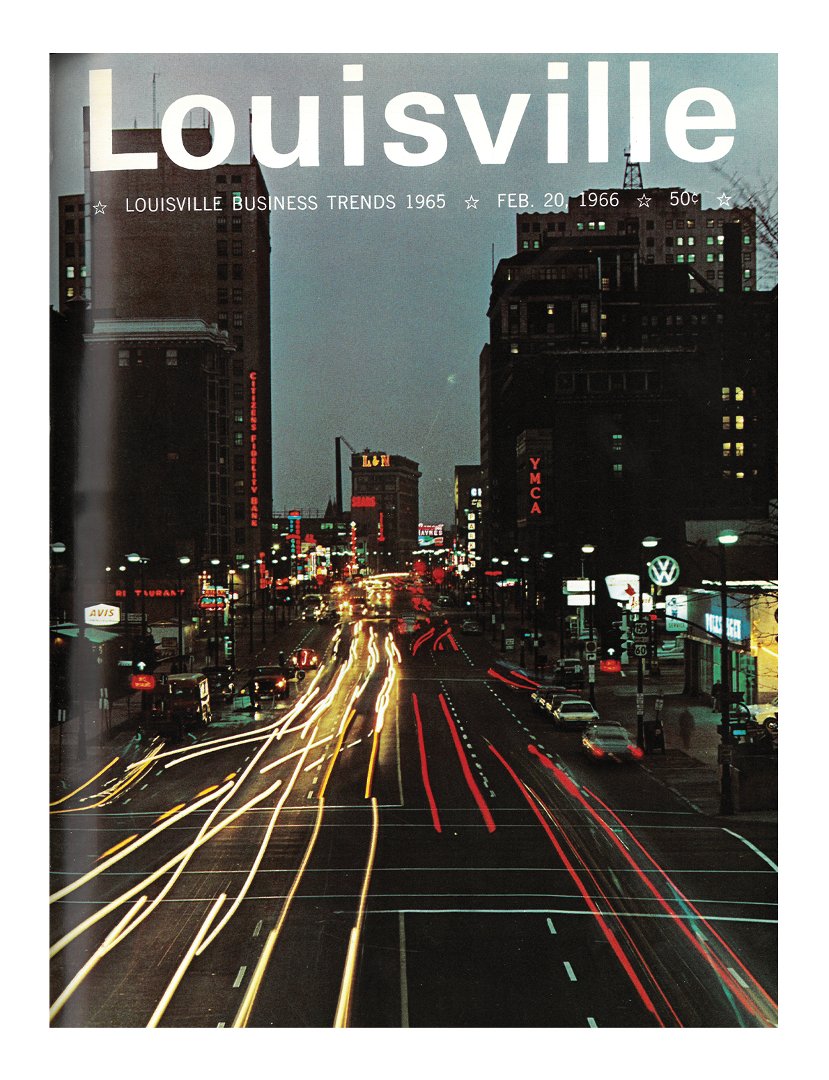 “Wow, some big changes in the 55 years since this cover photo was published. The big, bright neon lights that used to fascinate me as a kid no longer brighten up the evening in the westward drive down Broadway. The L&N sign and its ever-changing light show always captivated my attention. The YMCA where I learned to swim in the basement pool has relocated to Second and Chestnut streets, and the magnificent St. Francis School now carries on the tradition of youth development in that piece of real estate. Along with the businesses themselves, long gone are the huge signs on the Heyburn Building for Fawcett-Haynes printing, Sears and Citizens Fidelity Bank. Who would have predicted that those three leading businesses would no longer be in existence in Louisville today?”