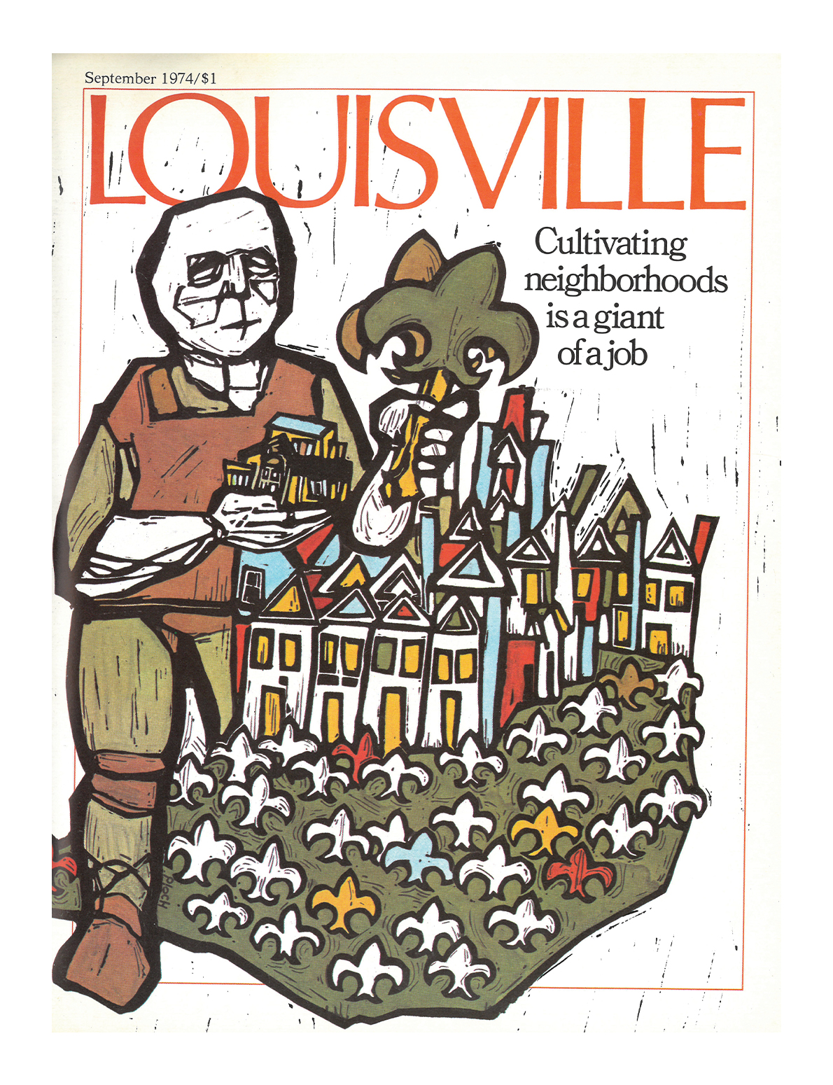“Louisville has a real love of community that manifests at the neighborhood level. Our collective identity is really as a tapestry of individual neighborhoods, which is a more human-scaled way to think about place. This cover really speaks to that patchwork feel. It knits together the shapes and colors that make us richer. It also speaks to the stained-glass windows that are ubiquitous throughout the city. And since cultivating anything requires some heavy lifting, the giant makes a good metaphor for the work involved.”