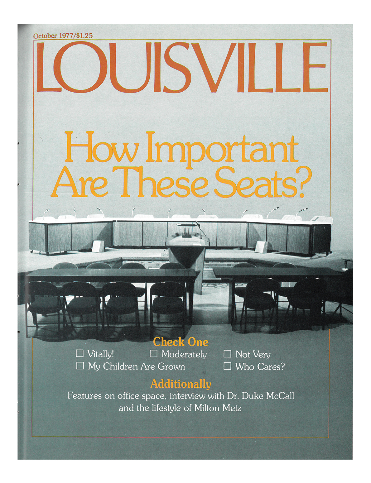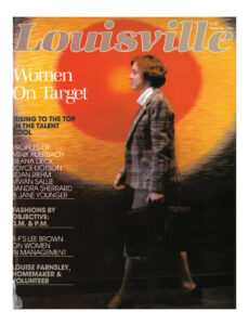 The cover caption (apologies!): “Girls seldom grace the cover — or even the inside pages — of this businessman’s magazine….” (The Louisville Area Chamber of Commerce owned Louisville Magazine until the early ’90s.)