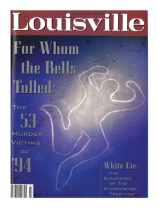 “When I see this old cover, it was March 1995. I was born in ’95. I’m seeing this chalk outline and the cover mentions ‘the 53 murder victims of ’94.’ Really, I’m fighting for a cause that has been going on way longer than my life, especially in Louisville. I’m just thinking about how things have not changed, yet we are still fighting for that change. The murder numbers have drastically changed. There’s more murders now, I’m sad to say. It’s really disturbing and disheartening.” (2020 saw more than 170 criminal homicide victims, the most ever for a year in Louisville. By the end of March 2021, the city was on pace to break that record. — Ed.)