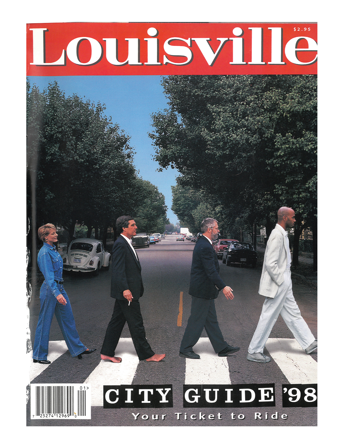 On the Abbey Road-inspired cover: WAVE-3 anchor Jackie Hayes (since retired), then-Mayor Jerry Abramson, Jon Jory of Actors Theatre (since retired), former U of L hoops star Darrell Griffith.