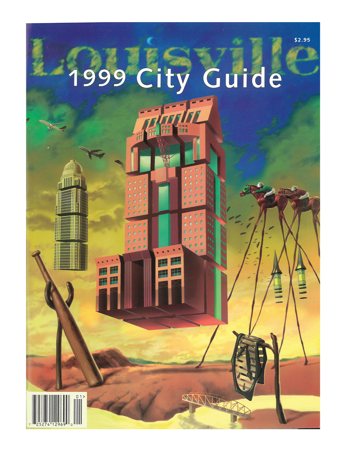 “On the cover, I love the reference to the infamous surrealist painter and subtle nods to retro sci-fi pulp covers — very appropriate for the new millennium. As an artist, this makes me want to see a series of Louisville-specific scenes rendered in the style of notable painters. Imagine a scenic landscape of Waterfront Park as a Monet; a Derby-inspired Pollock; the recovered oddities and treasures of the Falls of the Ohio immortalized as a René Magritte!”