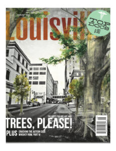 “This cover could still be featured today. If we showed you a map of tree canopy in Louisville, you would not only see where trees are in the city, but also you would see patterns of disease burden, income and urban heat. Living in greener areas has been linked to lower instances of heart disease, anxiety and depression. Low-income areas of Louisville have about half as many trees as the city’s average, and lack of tree cover can make a neighborhood more susceptible to urban heat-island effects. Trees also make air healthier to breathe by removing pollutants. According to Louisville Metro’s 2015 tree assessment, the city loses an average of 54,000 trees each year. Louisville is still getting hotter and still losing thousands of trees annually. We urgently need more trees to make Louisville a healthier and a happier place to live.”