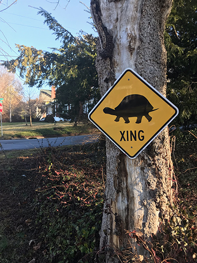Last week I included a Where Am I?, which used to be a small bit that ran in the magazine. Just a little pic, and readers would guess where it was taken. More than a dozen of you recognized the turtle sign, including reader LB Gregory from Anchorage, Alaska: “Near soon-to-be Minority Leader Mitch McConnell’s house.” The first to send me the correct answer was Cynthia Lee, who lives in the Belknap neighborhood near Douglass Loop. “I’m just a few blocks away and pass the sign frequently,” she says. “It was the talk of the neighborhood when first noticed.”