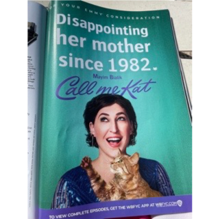 Reader Kristen Miller emailed me the other day about Call Me Kat, that FOX sitcom set at a fictional Highlands cat cafe — you know, the show I watched for the Louisville references (“burny-throaty” bourbon!), the one I somehow find myself writing about in this newsletter AGAIN. (SORRY!) “Saw this in a copy of Vanity Fair a few weeks ago and thought of you,” Kristen wrote. “This is the very definition of boundless optimism.” At the top it says “For Your Emmy Consideration.”