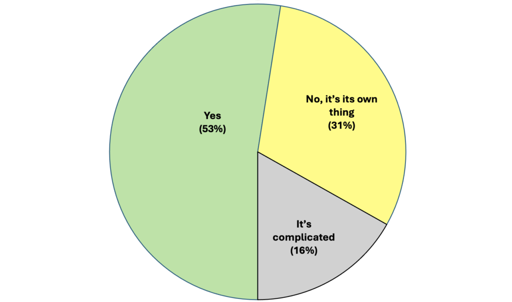 Here are quotes from three people who answered Yes, three who said No, it’s its own thing, and three who went with It’s complicated.